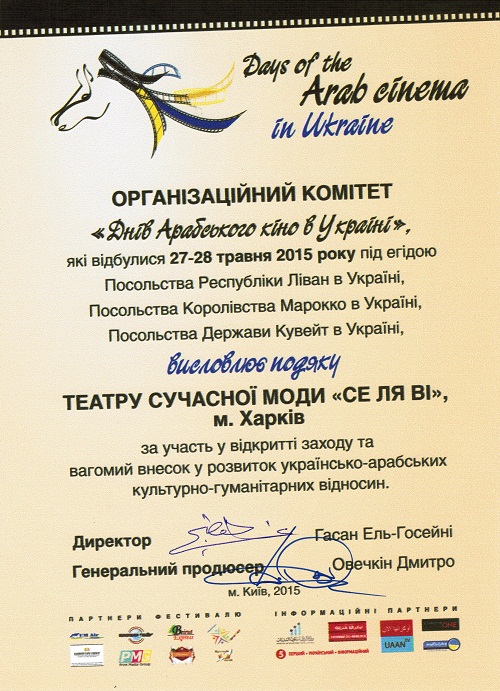 Організатори вислови подяку колективу за участь у відкритті заходу та вагомий внесок у розвиток українсько-арабських культурно-гуманітарних відносин.
